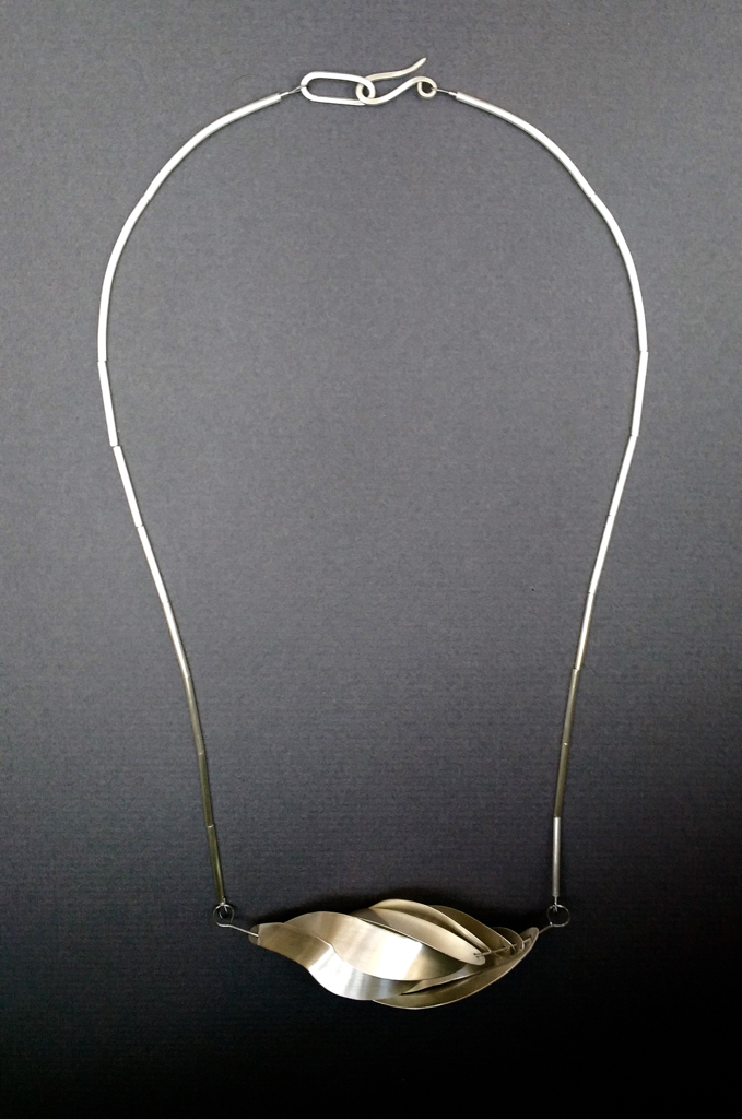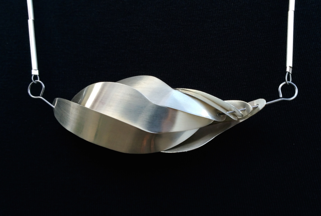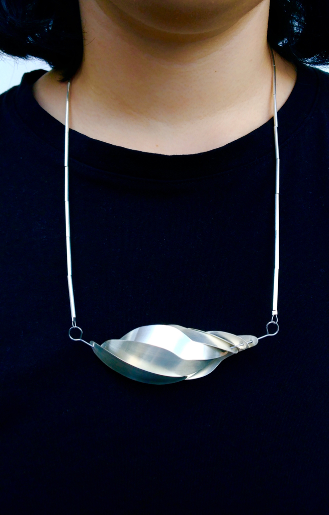 Reimagining Blombos neckpiece Carolyn YoungReimagining Blombos neckpieceSterling silver, stainless steel, nylon-coated stainless steel cord, 2021