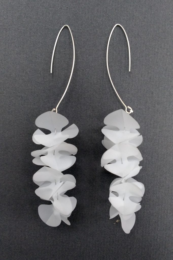 Panicle earrings Carolyn Young Panicle earringsMylar, sterling silver, nylon-coated stainless steel cable, 2018